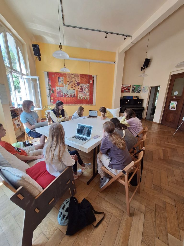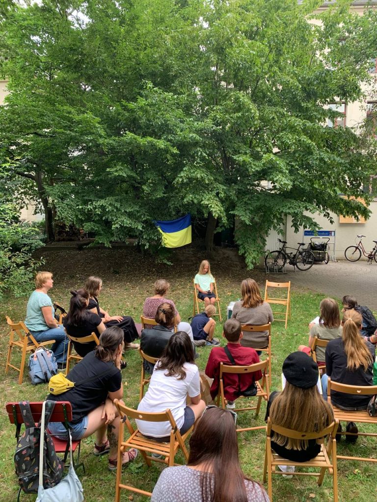 In June 2023, Margaryta conducted a workshop for teenagers aged 12 to 16 in Leipzig at ESG. Participants wrote their stories and presented them at a literary evening. They also visited the House of Poetry in Berlin, showcasing their work to a Berlin audience.