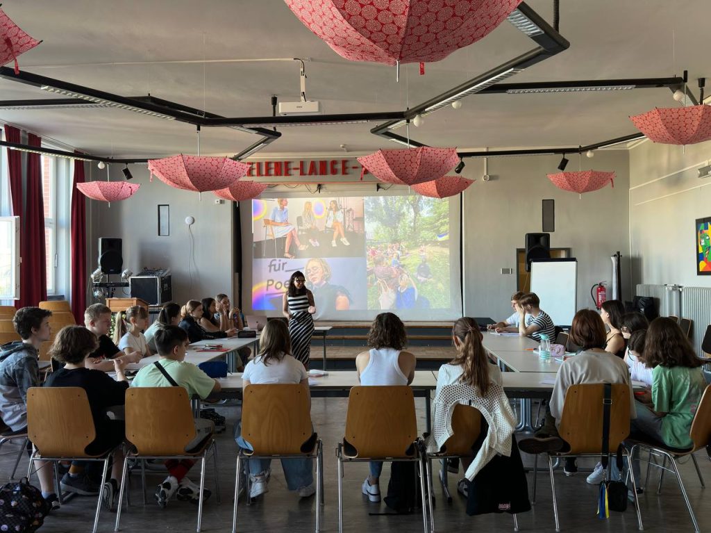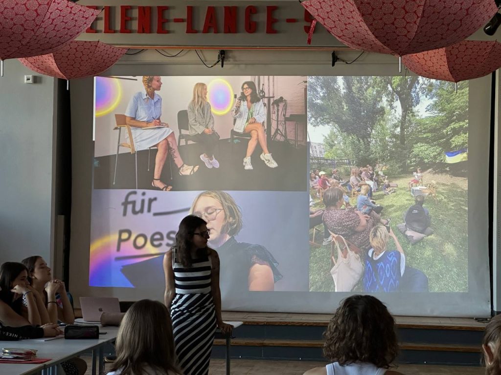 Margaryta joined Neu-Ropa team, Together with slam poet Bas Böttcher and fashion designer Anna Kabashna Margaryta is traveling to cities like Berlin, Kassel, Bremerhaven, and others. The team taught writing skills, presentation techniques, and visual self-expression to Ukrainian children and teens, and also for refuges from other countries, fostering creativity and connecting participants through artistic expression.